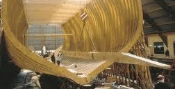 竜骨(りゅうこつ)。船舶の構造材のひとつで、船底を船首から船尾にかけて通すように配置された構造材のこと。
