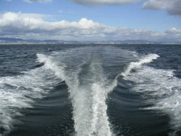 大型船の引き波に手漕ぎボートや小型船が不適切な角度で遭遇すると、極端な場合転覆する恐れがあり危険です。